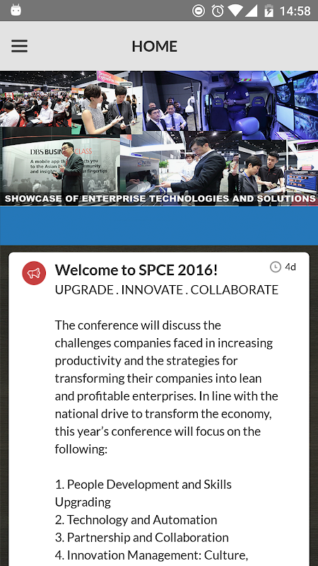 Singapore Productivity Conference and Exhibition 2016 aims to be the key event that helps the industry to build capacity and develop capabilities for holistic productivity through innovation, collaboration, technology and people development. The conference will discuss the challenges companies faced in increasing productivity and the strategies for transforming their companies into lean and profitable enterprises. In line with the national drive to transform the economy, this year’s conference will focus on the following: