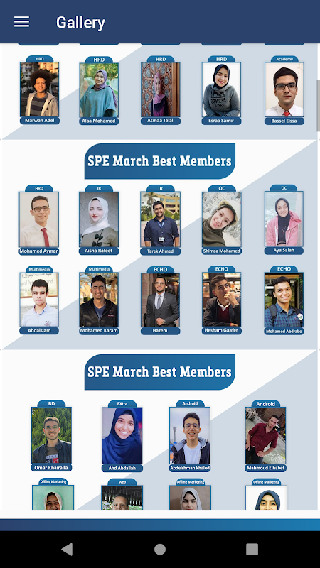 Finally, this is our application made by our Android Committee. The app has several interesting sections that makes it easier to know more about us and reach our products. Furthermore, there is the calculation section that help you in different technical aspects and Members Evaluation section that makes it easier for our members to track there progress. Download our app now and enjoy with us.