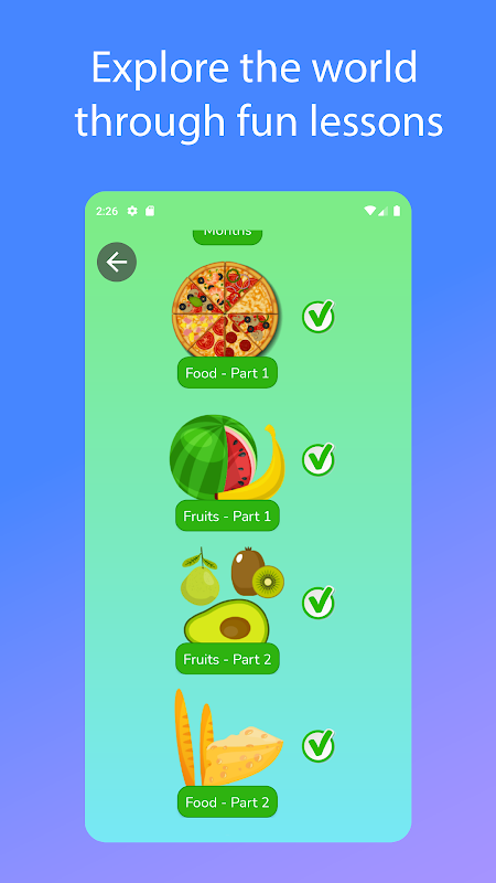 همه کلمات در برنامه دارای تصاویر و تلفظ بومی هستند.