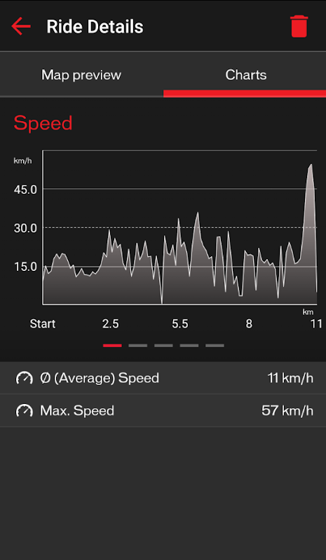 The app includes a comprehensive navigation (POI, search address, language coach and previous rides) in combination with an extensive and customizable board computer