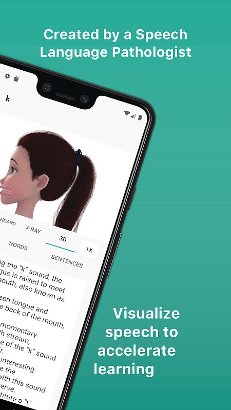 •تغییر بین انیمیشن های سه بعدی یا تصاویر اشعه ایکس برای همه صداها در الفبای آوایی انگلیسی