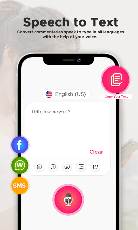 اگر مهارت نوشتن پیامک یا هر متن دیگری را ندارید! هنگامی که شخصی پیامک ارسال می کند و شما نمی توانید برای پاسخ به او بنویسید، مشغول هستید یا در حال رانندگی هستید. اکنون بسیار آسان است که پیام های خود را با مکالمه با متن یادداشت کنید. پیامک بنویسید با تایپ صوتی مبدل گفتار به متن - برنامه صدا به متن. مبدل به متن Speak یک برنامه عالی است که حتی با تایپ کردن روی صفحه کلید نیازی به تنش ندارید. فقط روی دکمه مبدل متن گفتار ضربه بزنید تا گفتار به متن تبدیل شود سپس متن به سرعت ظاهر می شود. اکنون می توانید برنامه مبدل صدا به متن را دانلود کنید، بنابراین بیایید شروع به دانلود پیامک به صورت صوتی در برنامه متن کنیم! گفتار برای تفسیر متن و گفتار رایگان بسیار آسان و ساده است. این بهترین مبدل صدا به متن است، برنامه گفتار به متن تا کنون این همان چیزی است که برای تایپ و برقراری ارتباط آسان از آن استفاده می کنید. بهینهساز زمان برنامه گفتار به نوشتار عالی و برنامه صوتی به متن برای افراد تنبل نیز.