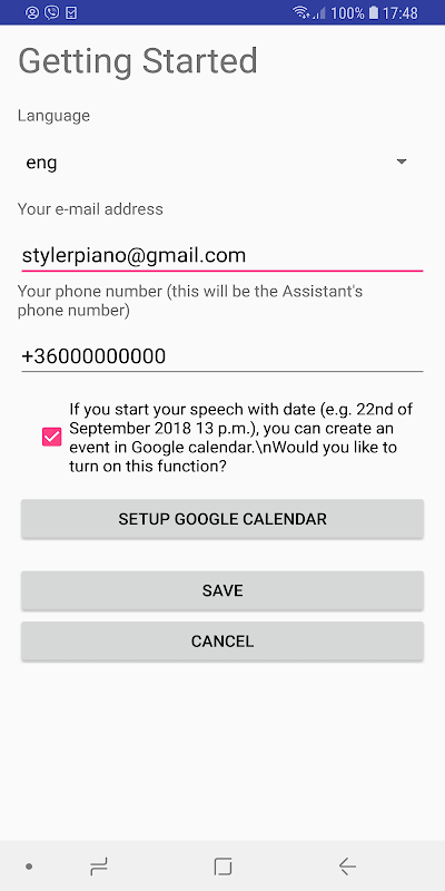 - If you start your speech with date (e.g. 22nd of September 2018 13 p.m.), you can create an event in Google calendar.