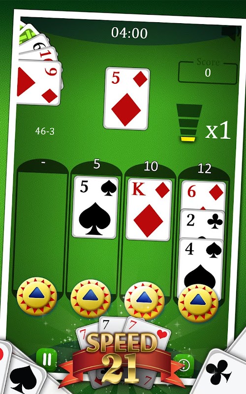 سرعت 21 یک ترکیب بین سیاه و سفید جک و همراه رایگان است، هدف شما این است که پشته کارت در اسلات 4 مختلف بدون بیش از 21.