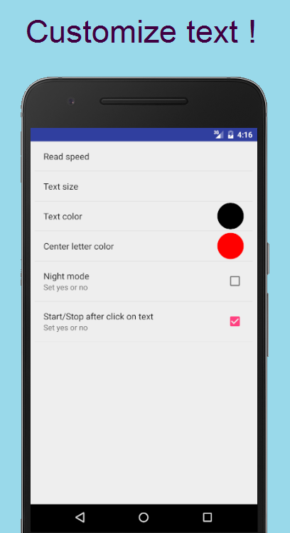 شما می توانید سرعت خواندن، اندازه متن و رنگ متن را تغییر دهید.