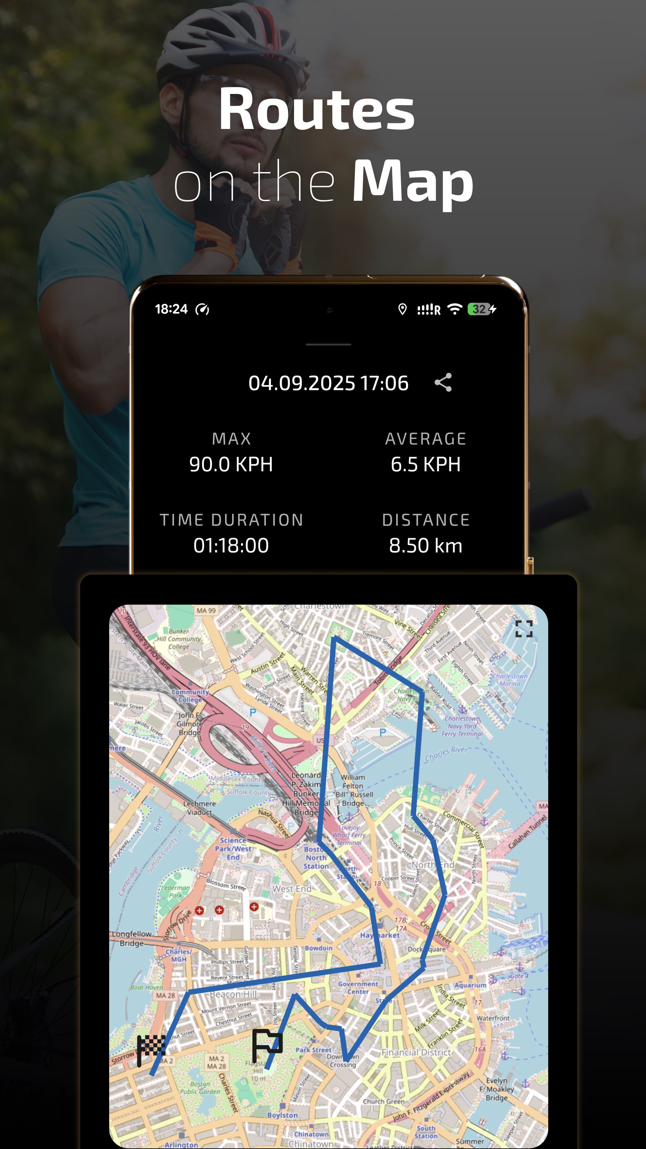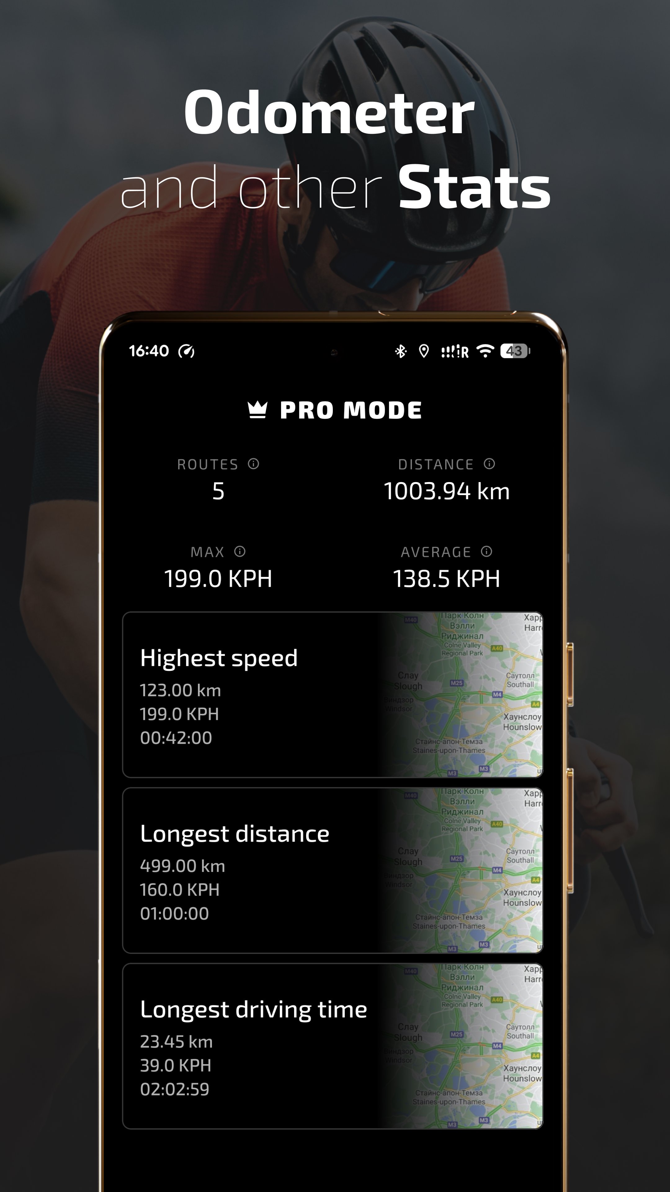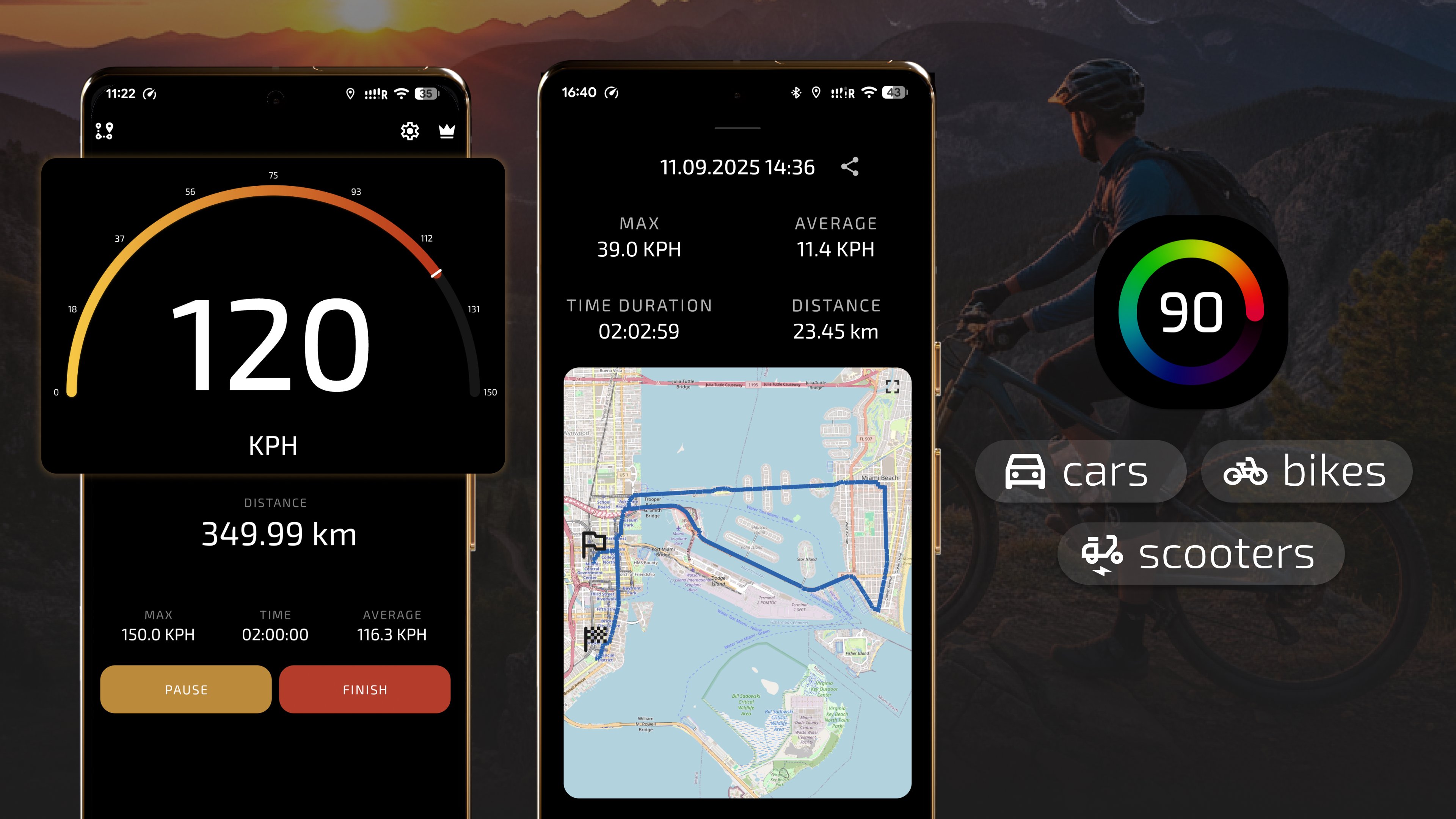 ✔️ آمار و سوابق - حداکثر سرعت، طولانی ترین مسافت و طولانی ترین مدت سواری خود را ردیابی کنید.