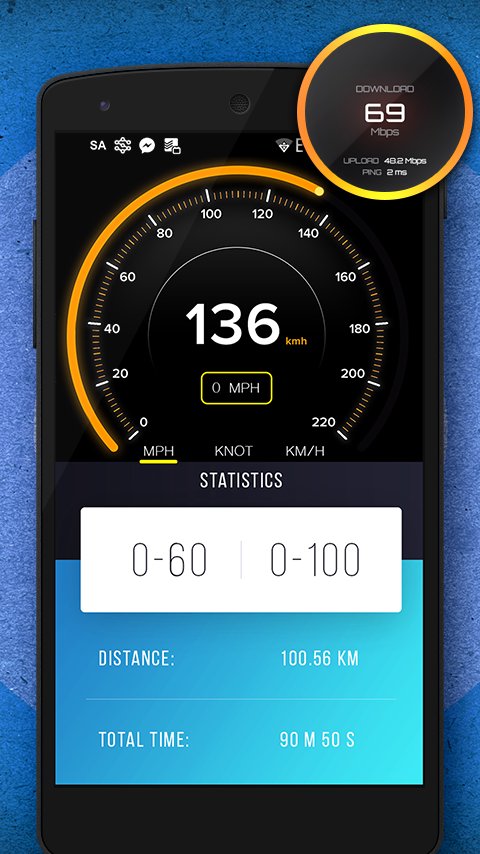 activate gps feature in your phone and open speedometer app ,the interface contains a speedometer app to measure your vehicle speed , in MPH,KNOT,KM/H, with two veriations on feet or on car. swipe down and your can find a speed tracker with map navigation to keep you updated in right track , and speed calculator with AVG TO MAX speed. Swip left and you can find compass calculator ,weather and chart for more acurate information. select menu button with defrent option like digital speedometer with head-up display (HUD) , desplay and themes, and a history for previous track all for free.