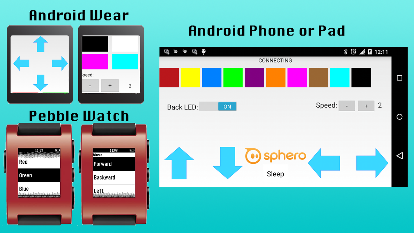 کنترل Sphero ربات با سازمان دیده بان لباس آندروید، آندروید تلفن و نقش ونگار ریگی دادن سازمان دیده بان.