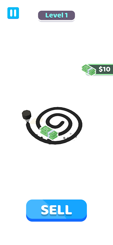 Start drawing lines with the pen, increase the size of the pen using increments, and finally decide whether to sell or draw!