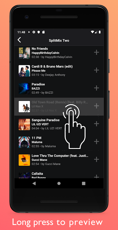 Enjoy two music players in one smartphone and play two songs at the same time!