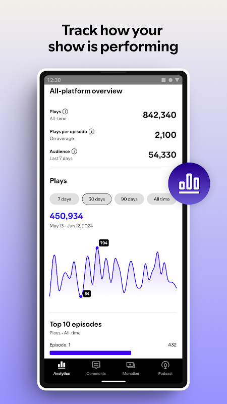 • پادکست خود را با بینشهای دقیق درباره نمایش و مخاطبان خود رشد دهید و از طریق تجزیه و تحلیل برداشت متوجه شوید که نمایش شما را کجا میشناسند