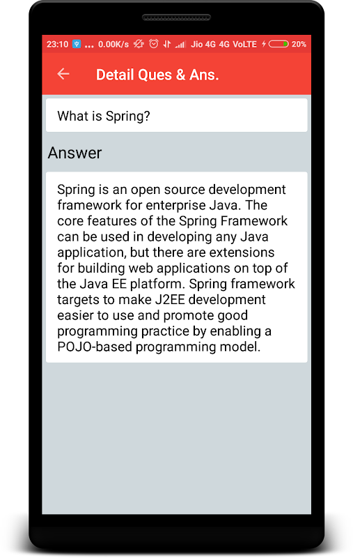 This app contains Questions with proper Answer for Interview from Spring.