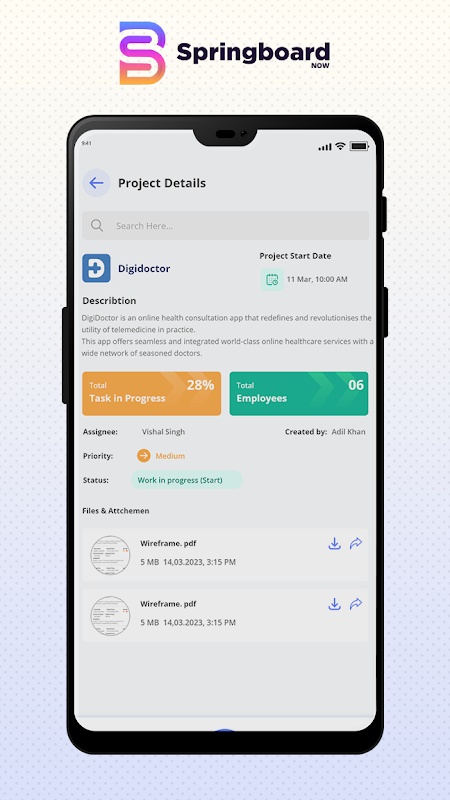 مدیر Springboard Now، که می تواند وضعیت کار پروژه و وظایف روزانه توسعه دهنده را ردیابی کند. ادمین میتواند همه مسترها را مانند Master Design، Master Master، Project Master، Project Type Master، Assign Project Master، Organization Master و User Master ایجاد کند. admin می تواند پروژه را به TLDeveloper و Developer اختصاص دهد.TLDeveloper می تواند وظایف روزانه را ردیابی کند و کارهای روزانه را برای توسعه دهنده ایجاد کند.TLDeveloper می تواند یک Module master، Storyboard، Timeline و Task board ایجاد کند. توسعه دهنده می تواند وضعیت کار را به صورت روزانه با کارهایی مانند در حال انجام، تکمیل، نگه داشتن و شروع به روز کند. تستر می تواند پروژه را آزمایش کند و یک بلیط برای اشکالات اصلی، جزئی و بحرانی ایجاد کند.