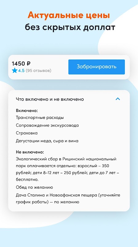 با استفاده از اپلیکیشن ما، می توانید در بیش از 650 شهر روسیه و جهان از جمله مسکو، سنت پترزبورگ، کازان، کالینینگراد، سوچی، آناپا، آدلر، پترهوف، استانبول، دبی، پیاتیگورسک، کیسلوودسک، و همچنین شهرهای آبخازیا، مصر، دبی، پیاتیگورسک، کیسلوودسک، و همچنین شهرهای بلریم، آبخازیا، مصر، دبی، سفر و خرید بلیط به موزه ها یا تراموای رودخانه ای در بیش از 650 شهر روسیه و جهان بخرید. ترکیه.