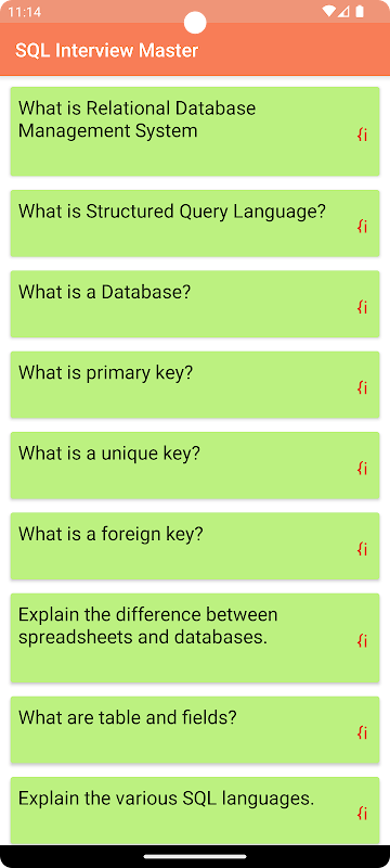 با استفاده از SQL Interview Master با اطمینان خاطر برای مصاحبه شغلی SQL آینده خود آماده شوید. این برنامه شما را با بینش های ضروری SQL و آمادگی مصاحبه مجهز می کند.