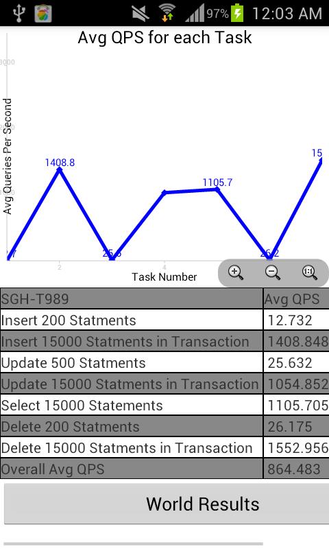این نرم افزار محک که در آن شما می توانید تست شما تلفن با چه سرعتی می تواند به پرسش از SQLite اجرا است. آن آزاد است، نگاه کنید چگونه سرعت گوشی خود را می تواند نمایش داده شد در حال حاضر اجرا!