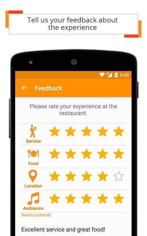 The restaurants want to hear your opinion about the service and the experience in their locations. Use the app to tell them your opinion about these things at the end of the reservation.
