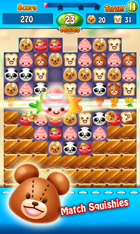 Join in the adventure through the Squishy Land. Travel through magical lands, visiting wondrous places and meeting spongy chewy looking Squishy! Switch and match your way through hundreds of fun levels in this spongy puzzle adventure. The sweetest game just keeps getting sweeter!