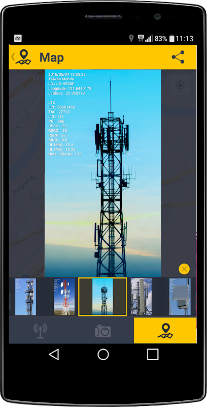 پارامترهای دقیق شبکه مانند قدرت سیگنال ، سرعت UL / DL ، شناسه سلول و غیره را مستقیماً در تلفن هوشمند Android خود قرار دهید و داده ها را به صورت همپوشانی روی عکس های دارای برچسب جغرافیایی نشان دهید تا بتوانید به راحتی به اشتراک بگذارید.