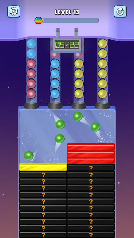 در این بازی پازل آرامشبخش، توپها را رها کنید، رنگها را با هم تطبیق دهید و تمام شیشهها را بشکنید.