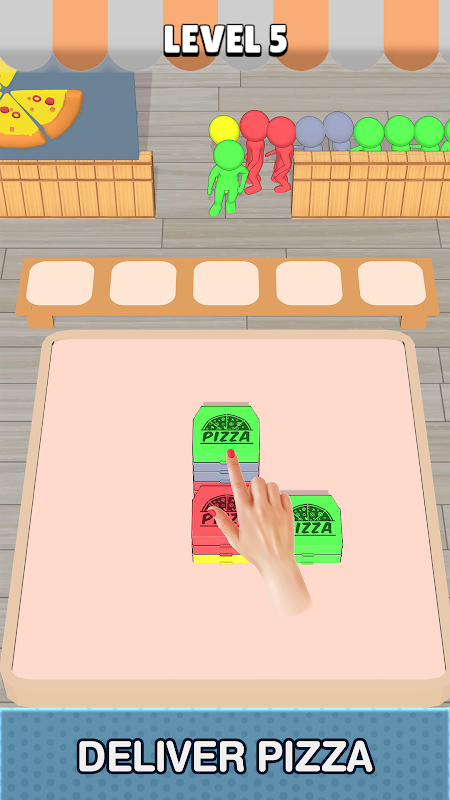 هدف شما این است که جعبه های پیتزای مناسب را با رنگ مشابه به استیکمن ها بدهید