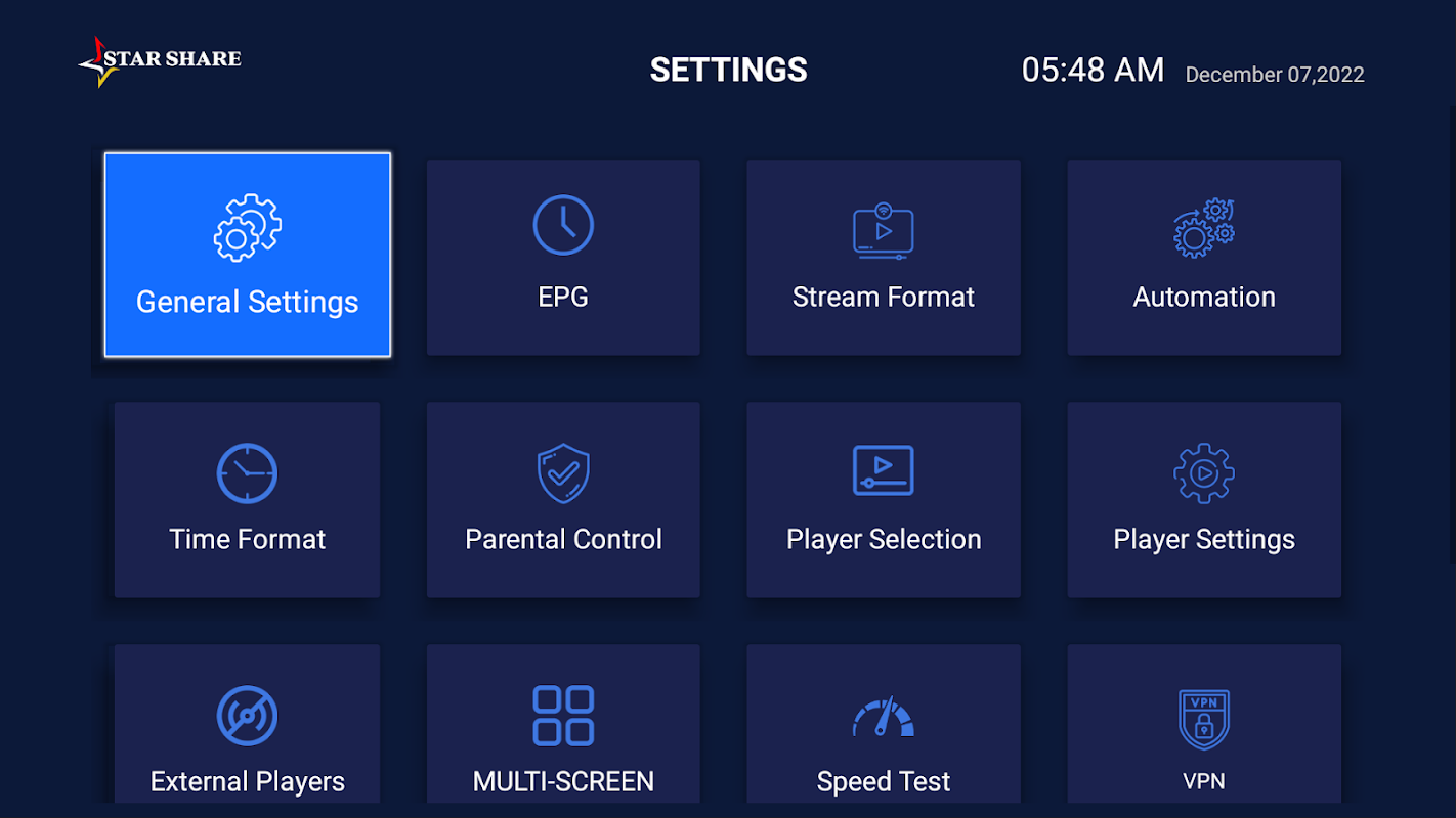 STAR SHARE is a fabulous media player that allows end-users to play their content like Live TV, VOD, Series, and Local audio/Video files supplied by them; on their Android Phones, Android TVs, FireSticks, and other android devices.