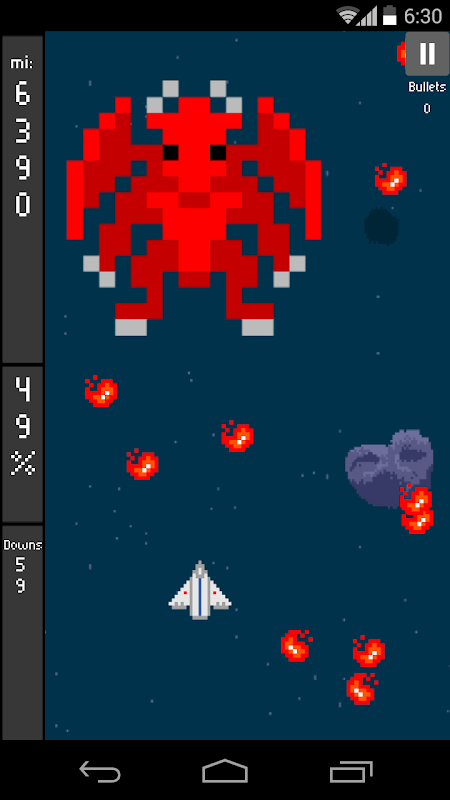 The spacecraft has a shot that can destroy alinígenas and meteorites, but is not as effective when you have many obstacles, you have to take the powers which will arise to survive.