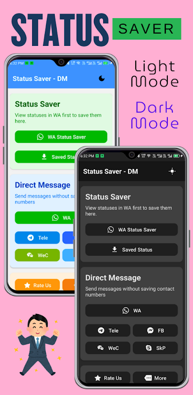 با برنامه رایگان Status Saver و Direct Message، پتانسیل کامل تجربه پیام رسانی خود را باز کنید! این برنامه برای راحتی و سهولت استفاده طراحی شده است، این برنامه به شما امکان می دهد بدون زحمت وضعیت WA را ذخیره کنید و پیام های مستقیم را بدون دردسر ذخیره مخاطبین ارسال کنید.