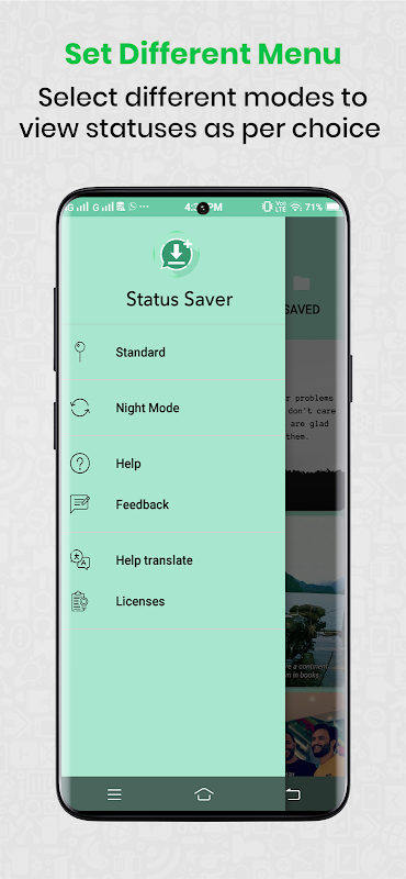- این برنامه ذخیره کننده وضعیت whatsapp به WhatsApp وابسته نیست. این ابزاری برای ذخیره تصاویر و وضعیت ویدیوهای WhatsApp است.
