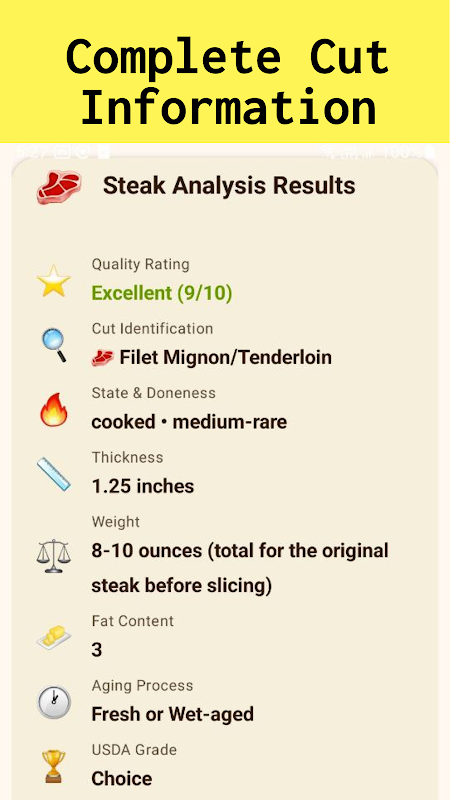 حدس و گمان را از آشپزی کنار بگذارید! SteakID فوراً هر قطعه گوشت گاو را از یک عکس ساده شناسایی می کند. فرقی نمیکند در قصابی، خواربارفروشی، یا برنامهریزی باربیکیو بعدی خود باشید، در عرض چند ثانیه شناسایی دقیق استیک را دریافت کنید.
