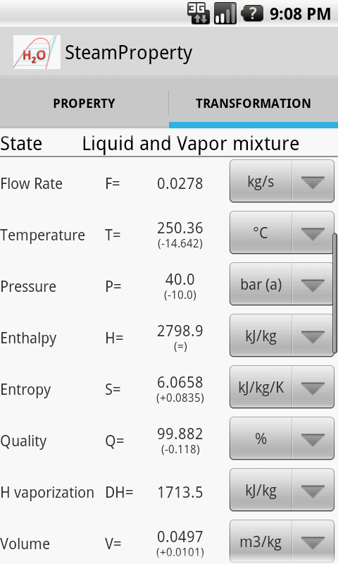 این برنامه اجازه می دهد تا خواص بخار ترمودینامیکی بخار و / یا آب را با ورودی های زیر محاسبه کنید:
