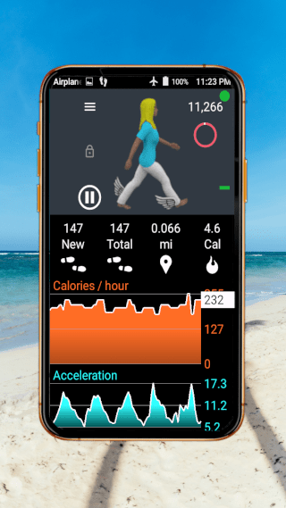 دقیقترین گام شمار با نمودارهای بیدرنگ دقیق برای سرعت، کالری، فرکانس گام (سرعت)، طول گام و موارد دیگر.
