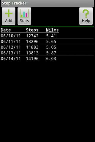 آیا شما یک گام شمار؟ آیا شما حساب که چگونه بسیاری از مراحل شما در هر روز را؟ آیا می خواهید برای پیگیری آنها و قادر به مشاهده طور متوسط از چند مرحله پستها در طول روز و یا مایل / کیلومتر پستها در طول روز؟ این برنامه اجازه می دهد تا شما را به انجام این کار. فقط مراحل و مایل / کیلومتر برای هر روز را وارد کنید و آنها را ذخیره و در دسترس برای مرجع است. شما همچنین می توانید به طور متوسط روزانه ببینید. این برنامه می کند مراحل خود را برای شما به حساب نمی، آن را به سادگی جایی برای ثبت مراحل به دست آمده از برخی منابع دیگر است.