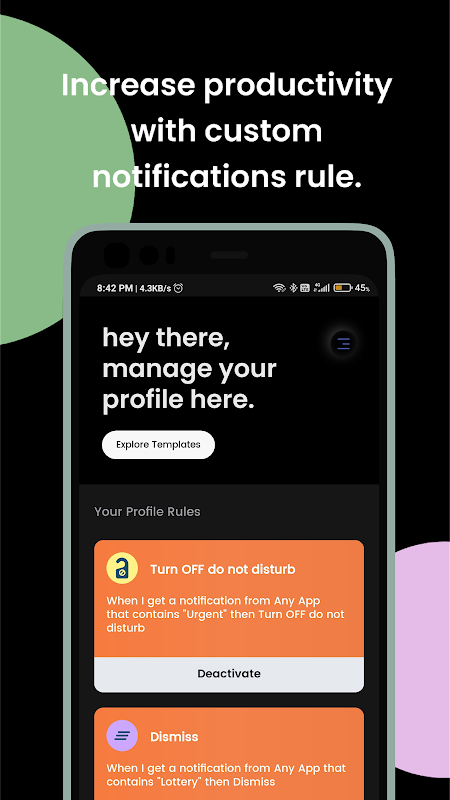 شما در حال کار هستید و *تلفن بوق می دهد📲، حواس شما پرت می شود. ❌پایان اما با برنامه STFO، می‌توانید قوانینی را تنظیم کنید که تمام اعلان‌های پیشنهاد را بی‌صدا کند و فقط در صورتی که پیام فوری است که باید به آن پاسخ دهید، به شما هشدار می‌دهد.
