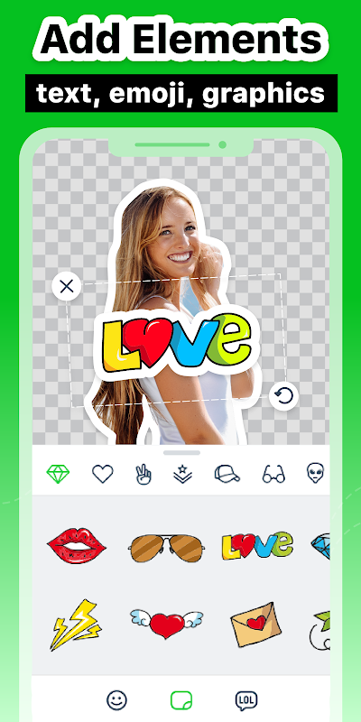 Download Sticker It for free on your Android phone or tablet, pick the photo you wish to convert to a sticker, cut the photo, add desired elements and emoji to it, and make final improvements. Your sticker is ready to be used on your favorite messaging applications. You can also create your own personal sticker packs and use them in different moods and situations. Your friends are going to be surprised once you send them your personal cool and funny stickers.