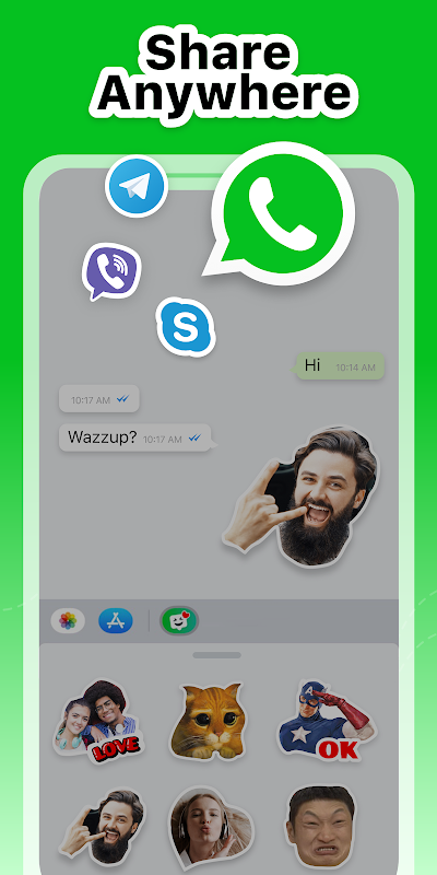 Three. Not only you can export your personal sticker packs and memes to WhatsApp, but you can also share your created stickers to any other apps and social messaging services.