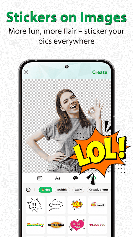 چه در حال طراحی استیکرهای زیبا برای سرگرمی باشید و چه بستههای میم برای چتهای گروهی، Sticker Maker همه ابزارها را برای خلاقیت در اختیار شما قرار میدهد - بدون نیاز به تجربه طراحی!