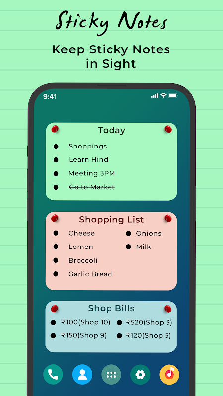 ✓ Sticky note memo widget.