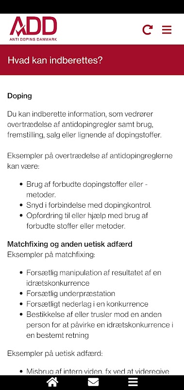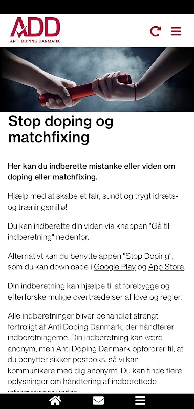 شامل اطلاعات در مورد دستورالعمل ضد دوپینگ دانمارک و این فرصت را به گزارش سوء ظن از موارد دوپینگ.