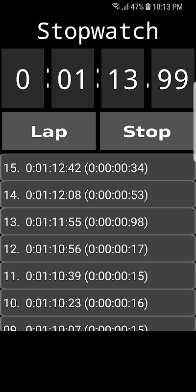• برنامه‌نما Stopwatch عکس از صفحه
