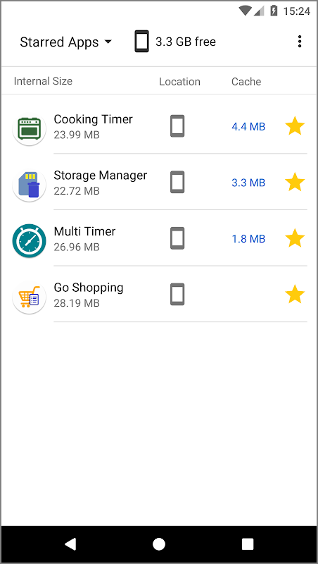 - نمای کلی همه برنامه های نصب شده خود را پاک کنید، نمادهای برنامه، نام ها و جزئیات استفاده از فضای ذخیره سازی را نمایش دهید (حافظه داخلی، اندازه برنامه، اندازه داده).