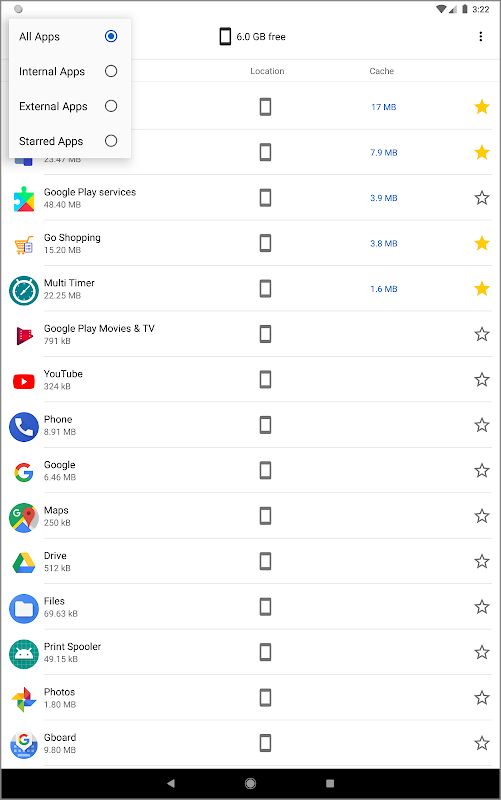 - برنامه های داخلی: فقط برنامه های نصب شده در حافظه داخلی را نمایش دهید.
