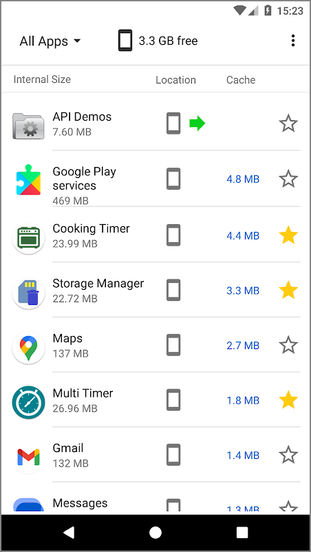 با Storage Manager، میتوانید برنامههایی را که فضای ارزشمندی را در حافظه داخلی خود ذخیره میکنند شناسایی کنید و به راحتی به صفحه تنظیمات Android برای هر برنامه انتخابی بروید و به شما امکان میدهد تغییرات لازم را انجام دهید و فضا را آزاد کنید. از پاک کردن حافظه پنهان و انتقال برنامه ها به کارت SD گرفته تا پاک کردن داده ها و حذف نصب برنامه ها، همه اینها تنها با چند ضربه فاصله دارند.