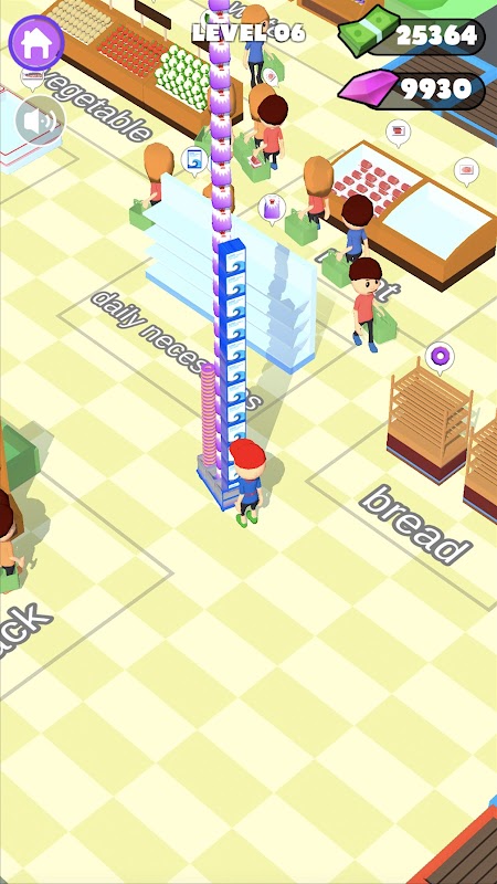 As you level up, you can keep unlocking various areas of the store, starting with a small store and turning it into a big store business. From fresh fruit to daily chemicals, to dog food and cat food, let customers fill their shopping carts and money into their pockets!
