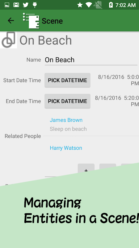 شما می توانید اشخاص، مانند شخصیت ها و صحنه که در داستان ظاهر می شود را مدیریت کند.