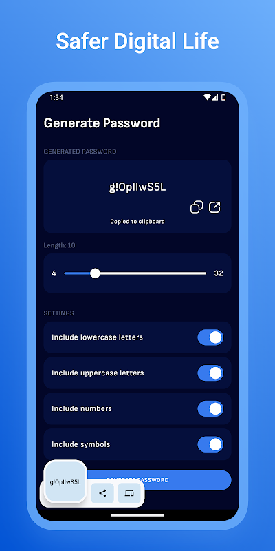 Password Generator به شما کمک می کند تا رمزهای عبور قوی، تصادفی و منحصر به فرد را برای همه حساب های خود ایجاد کنید. با یک ضربه از خود در برابر هکرها محافظت کنید.