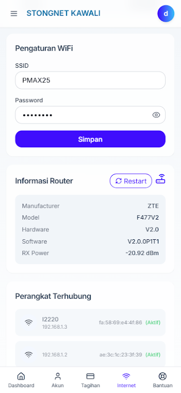 رابط کاربری ساده و کاربرپسند این برنامه را برای هر کسی آسان می کند. فقط با Strongnet Kawali کنترل کامل سرویس اینترنت خود را در هر زمان و هر مکان دریافت کنید.