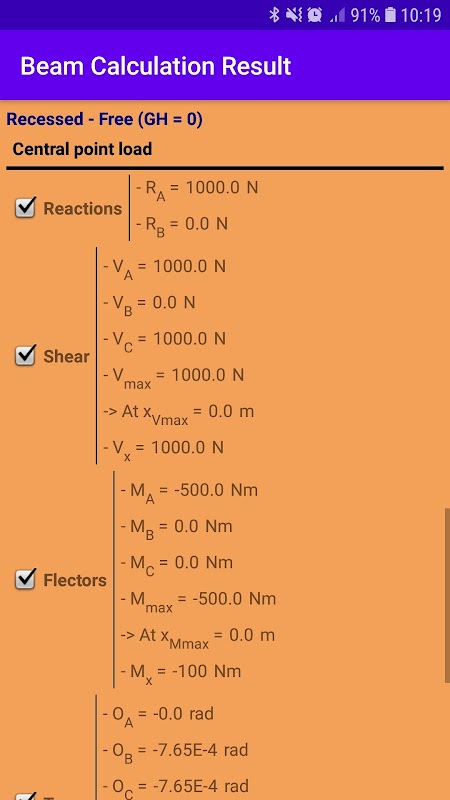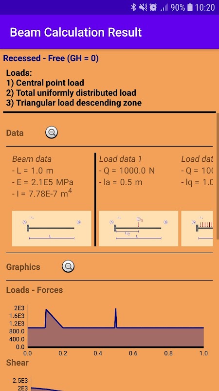 - از بارهای نقطه ای ، بارهای توزیع شده به طور مساوی ، بارهای مثلثی ، بارهای ذوزنقه ای و گشتاورها پشتیبانی می کند. همه آنها در هر موقعیت و مقداری <4.