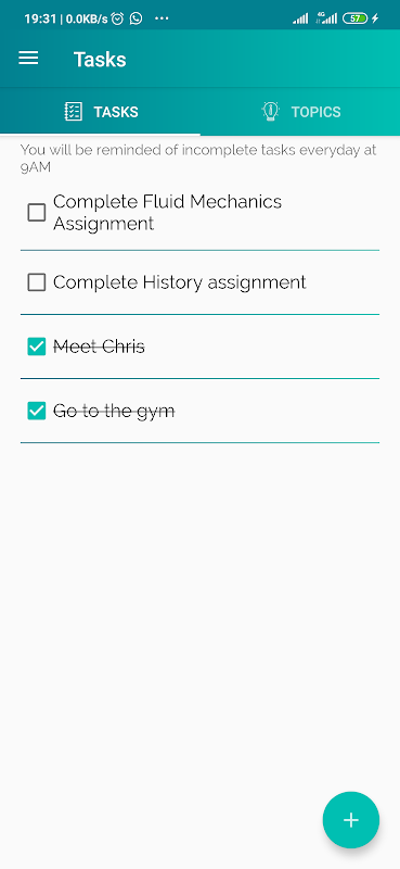 وظایف را اضافه کنید و پس از اتمام آنها را علامت بزنید