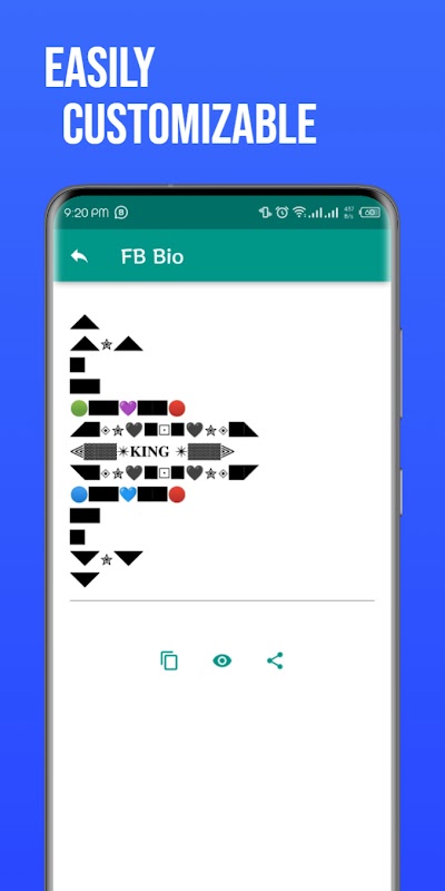 3) Quick copy/share/ button app you can copy the generated text and replace it with your profile name.